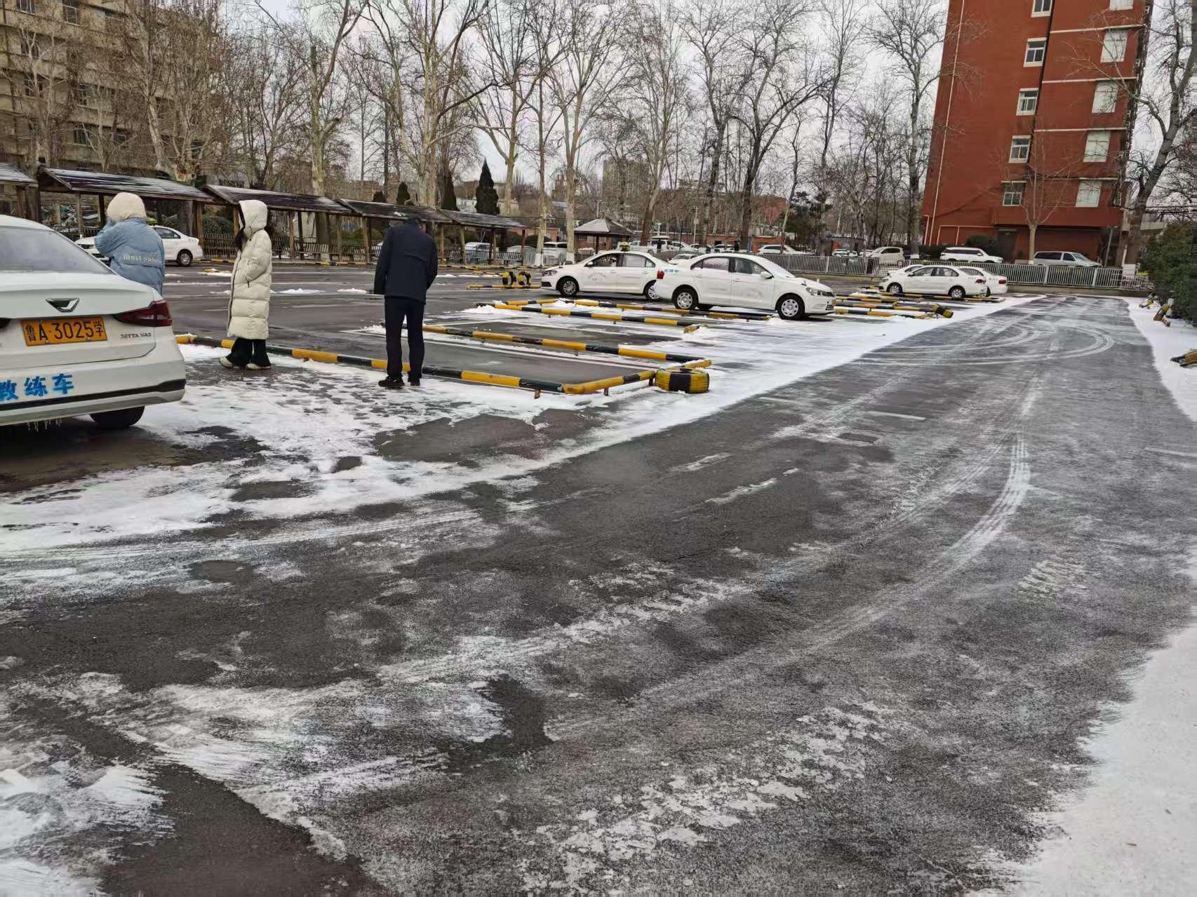 2026年1月19日,济南突降的雨夹雪使驾校训练场地形成坚硬的冻雪层,正常教学特别是临考学员的考前集训面临中断风险。